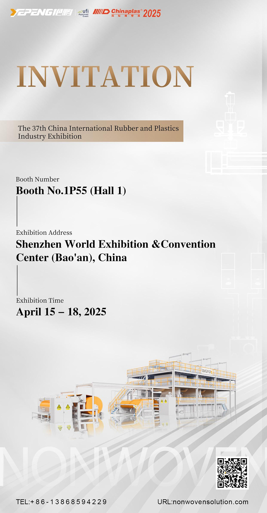 Queridos amigos de todos los ámbitos de la vida, Zhejiang Yanpeng Non - woven Machinery Co., Ltd. está súper emocionada de invitarlos cálidamente a la 37a Exposición Internacional de la Industria del Plástico y el Caucho de China.